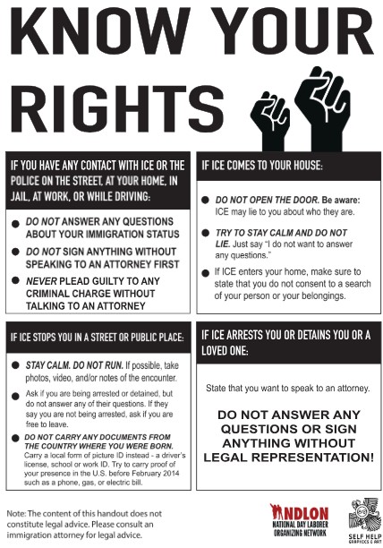 Speakers will include representatives from the law offices of George W. Abbes and IDEPSCA (Instituto de Educacion Popular del Sur de California), leading know-your-rights workshops for undocumented immigrants.More speakers to be announced later.