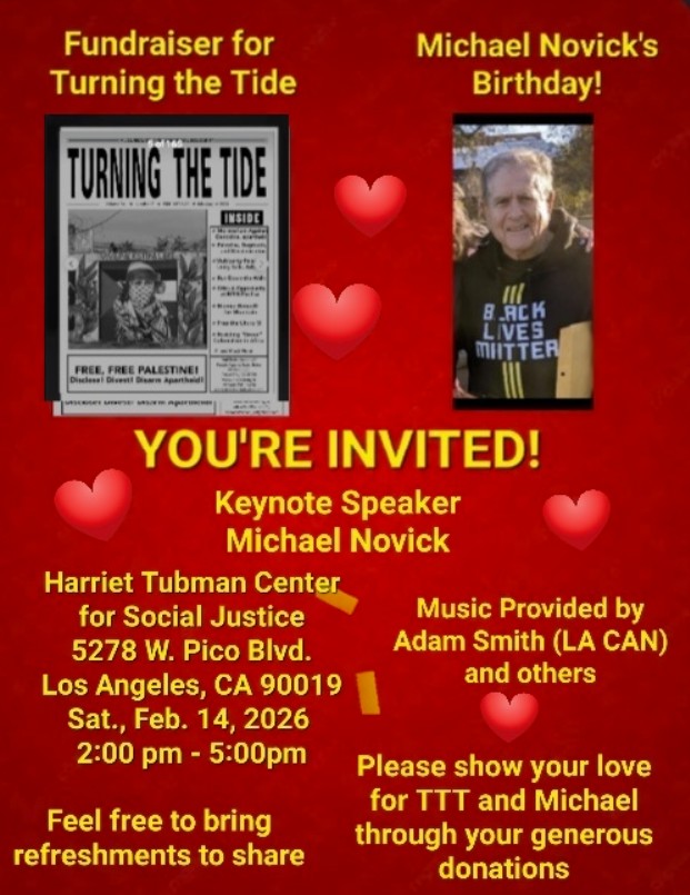 Michael Novick is a long-time anti-racist and internationalist, a rank and file labor activist in UTLA, a former member of the ICUJP board, and served as the unpaid General Manager of KPFK from Sept. 2022 through Nov. 2024. He has edited and published Turning The Tide: Journal of Intercommunal Solidarity since 1988, and also works on the Change Links community calendar & news. He was a co-founder of the John Brown Anti-Klan Committee, the Anti-Racist Action Network, and the Torch Antifa Network. His recent work has focused on the military and surveillance uses of A-I, and its threat to human agency and solidarity, the environment and the future. Examples of his work can be found at https://antiracist.org and https://change-links.org7:30 - 7:35 Log in and socialize